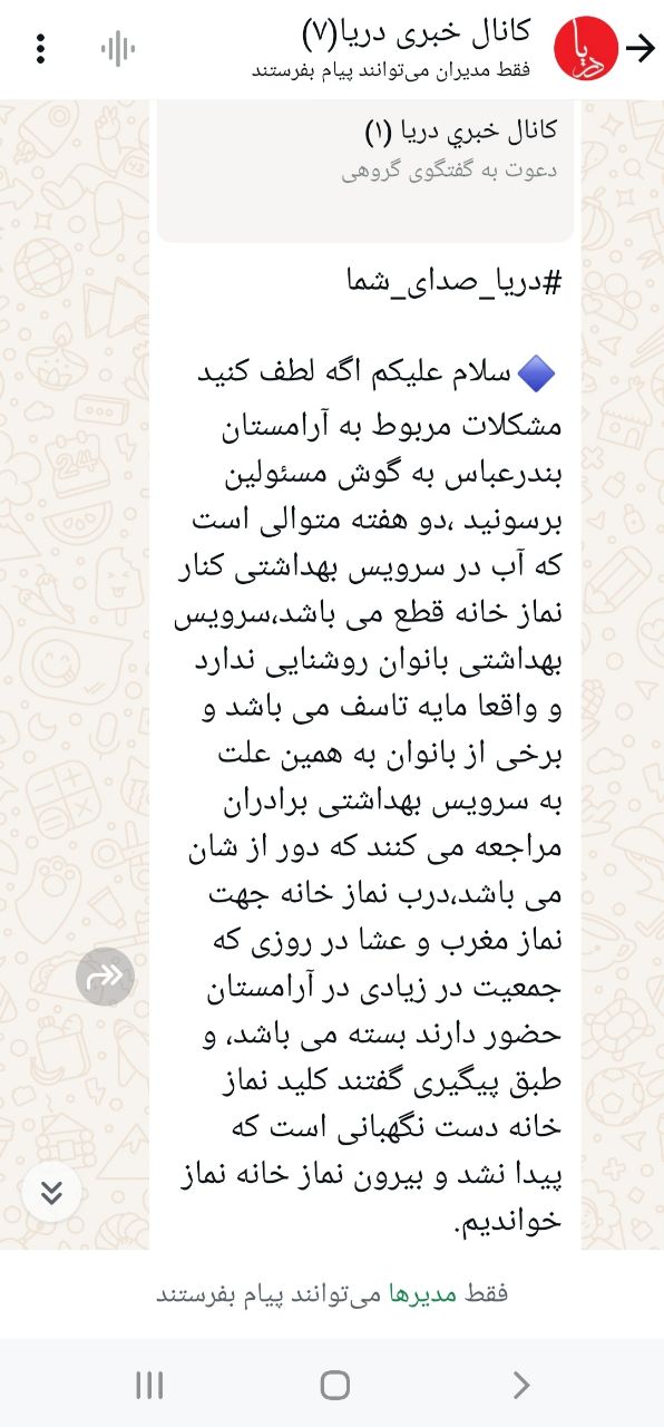جوابیه سازمان مدیریت آرامستان شهرداری بندرعباس در پی ارسال پیام در فضای مجازی روزنامه دریا از صدای یک شهروند